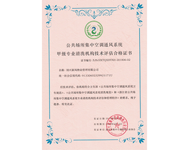 甲級(jí)專(zhuān)業(yè)清洗機(jī)構(gòu)技術(shù)評(píng)估合格證書(shū)